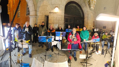 Wir proben für das schöne "Turmblasen" am Silvesterabend. Lohnt sich immer - das Üben und das Dabeisein.