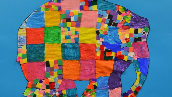 Gestaltung eines Kunstwerks aus verschiedenen Papierfragmenten, die Kreativität und Entscheidungsfähigkeit fördert. Materialien: alte Zeitschriften und Zeitungen, Tonkarton, Scheren, Kleber.