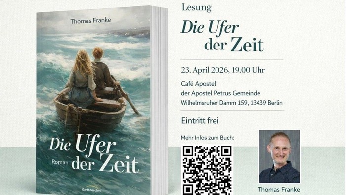 Am Donnerstag, 23. April laden wir um 19 Uhr ins Café Apostel der Apostel-Petrus-Kirchengemeinde ein. Autor Thomas Franke wird aus seinem neu erschienenen Roman "Die Ufer der Zeit" vorlesen und Hintergrund-Geschichten dazu erzählen. Außerdem dürfen wir gespannt sein, einiges aus dem Leben eines Autors und von seinem Schreib-Prozesses zu erfahren.