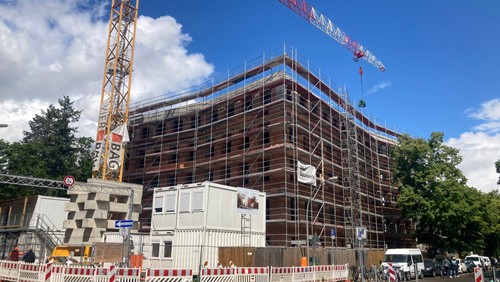 Es hat sogar mal die Sonne gegrüßt beim Richtfest des neuen Kirchlichen Verwaltungsamtes Berlin Mitte-Nord (KVA) am 23. Mai 2025 im Wedding. Auf dem Gelände des Kornelius Forums soll nicht nur Raum für das KVA Berlin Mitte-Nord entstehen, sondern auch Wohnungen und ein Café. Der fünfgeschossige Bau ist insofern besonders, als dass er nach dem klimagerechten „2226“-Konzept gebaut wird und aufgrund modernster Bautechnik überwiegend ohne Heizung und gänzlich ohne Kühlung auskommt.