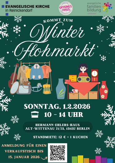 Ob Kleidung, Bücher, Deko oder kleine Schätze – auf unserem winterlichen Flohmarkt darf alles angeboten werden, was anderen noch Freude bereiten kann. Wer zu Hause Dinge hat, die zu schade zum Wegwerfen sind, kann sich gern einen Tisch sichern und mitmachen. Oder kommt einfach als Besuchende vorbei!