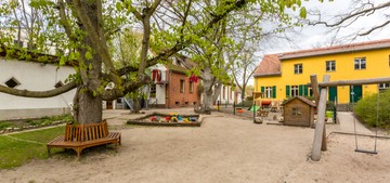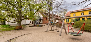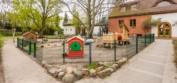 In der Zeit von 8 - 15 Uhr werden in unserer kleinen, familiären Teilzeitkita 20 Kinder im Alter von 2 Jahren bis zum Schuleintritt von drei Erzieherinnen und einer Heilpädagogin betreut. Unser Kitagebäude ist umgeben von einem großen Garten, in dem es sich herrlich spielen lässt.